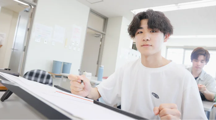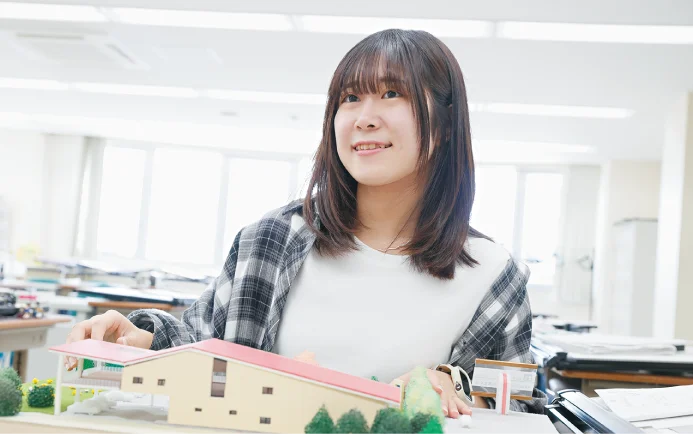 卒業時に二級建築士の受験資格を得られることが魅力でした。オープンキャンパスに参加して模擬授業を受けたり、先生や先輩から学校のことを詳しく聞いたりしたことも入学を決めるポイントになりました。授業では専門用語などに少し苦戦しましたが、新しいことを学べているんだと実感でき、充実した毎日です。