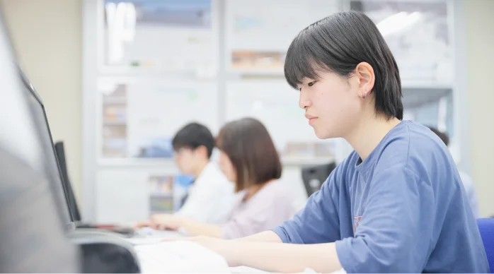 住宅設計の現場に早く出て、多くの経験を積みたいと考えているので、短期間で集中して学べる環境の青山を選びました。二級建築士の資格合格に向け、親身にサポートしてくれる建築研究科があることも大きな理由です。先生たちが日々熱心に私たちと向き合い、指導してくれるので、安心して勉学に打ち込んでいます。