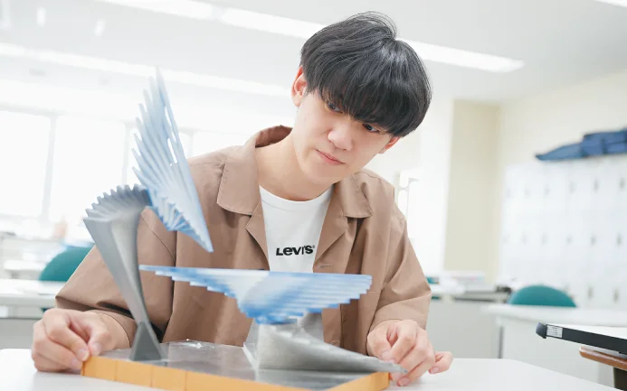 住宅を計画、デザインするために必要な造形の技法や見方・考え方を学べます。作品のアイデアを自分で練って、デザインしていくのが楽しいです。絵を描くだけではなく色彩について学んだり、立体的な作品を作ったりするのも面白い! 担当の先生が話しやすく、丁寧に教えてくれるところもおすすめです。